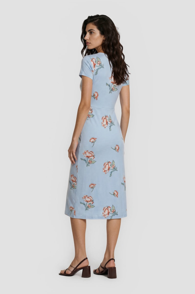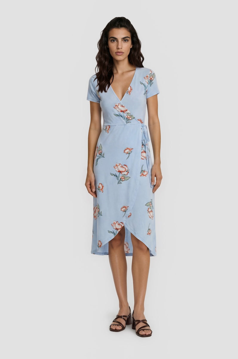 Printed Wraparound Dress - Blue - Womens Midi Dresses - Fairweather
