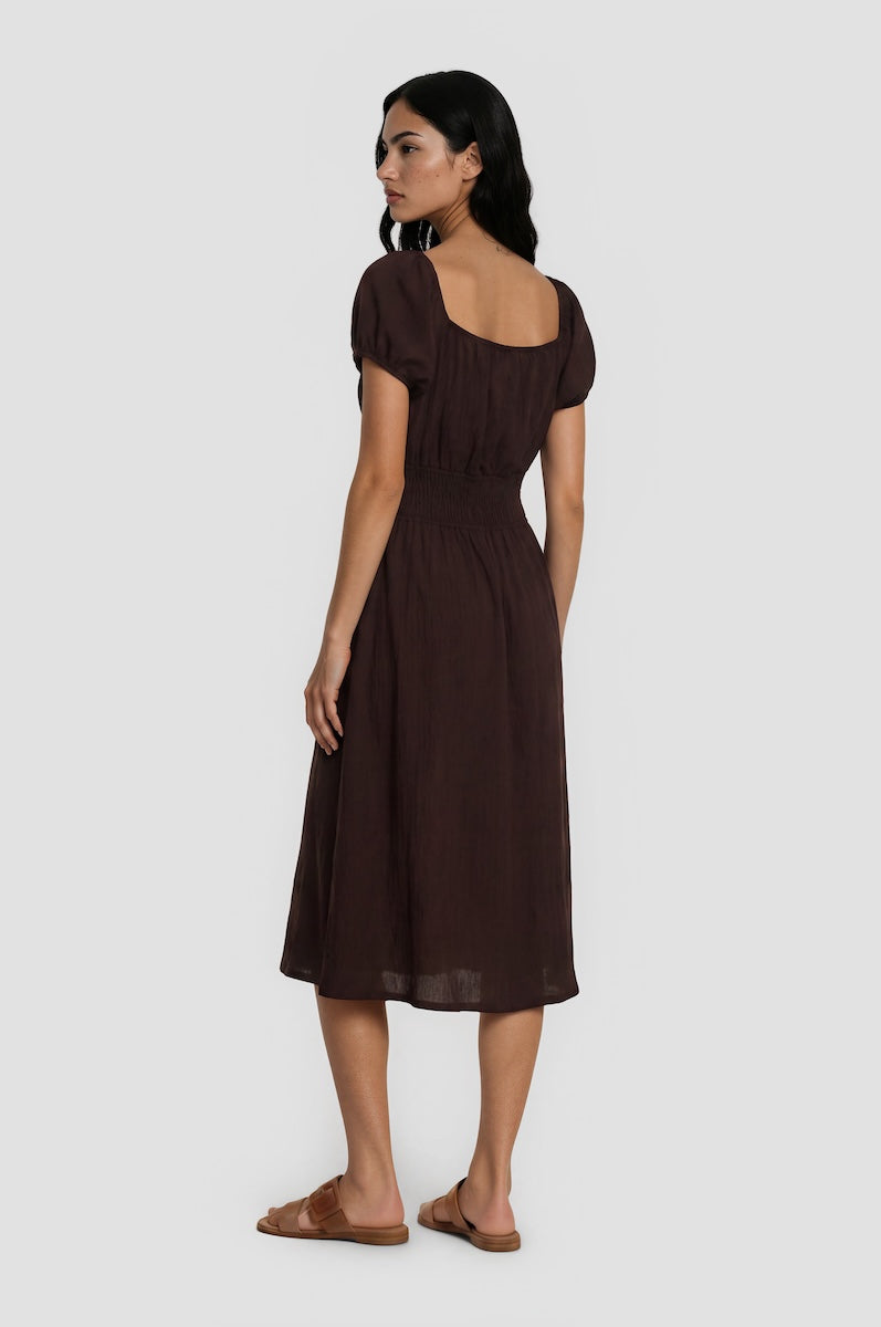 Smocked Waist Midi Dress - Brown - Womens Day Dresses - Fairweather