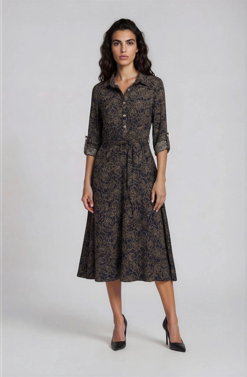 Printed Midi Dress - Black - Womens Midi Dresses - Fairweather