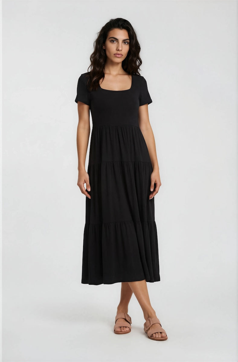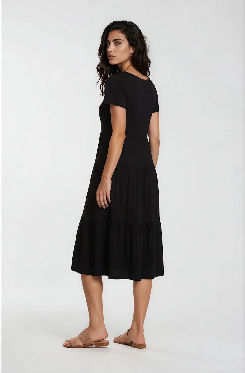 Short Sleeve Tiered Day Dress - Black - Womens Day Dresses - Fairweather