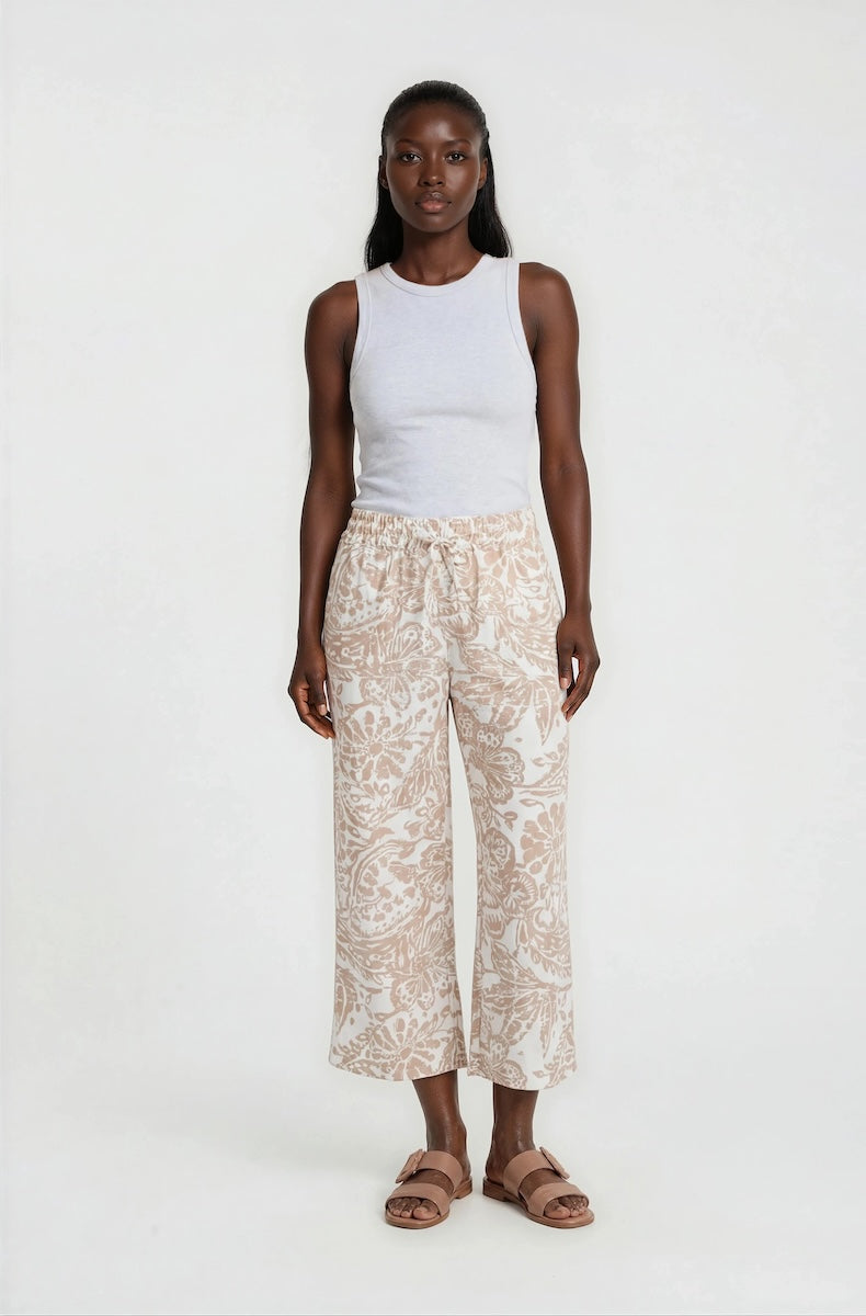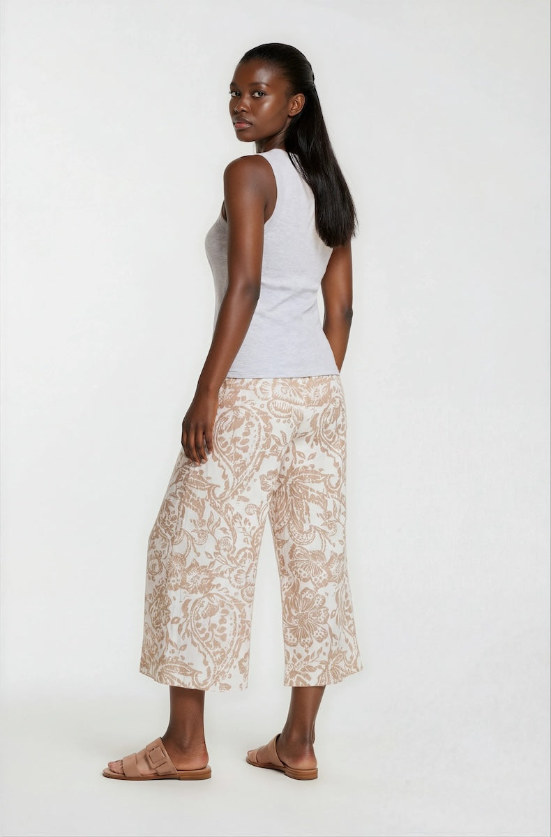 Printed Wide Leg Capris - Beige - Womens Shorts & Capris - Fairweather
