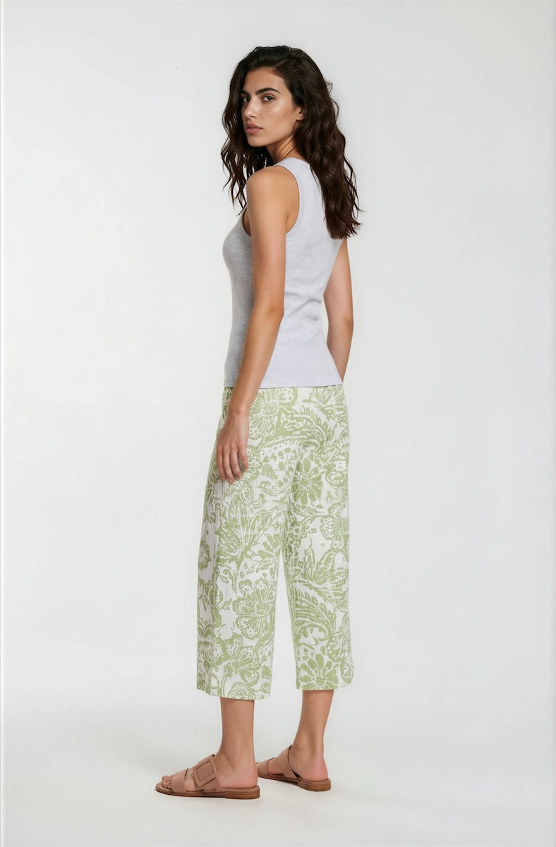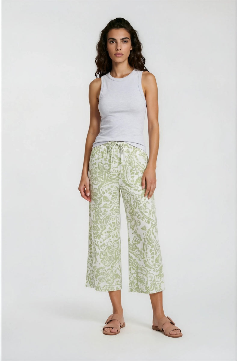 Printed Wide Leg Capris - Olive - Womens Shorts & Capris - Fairweather